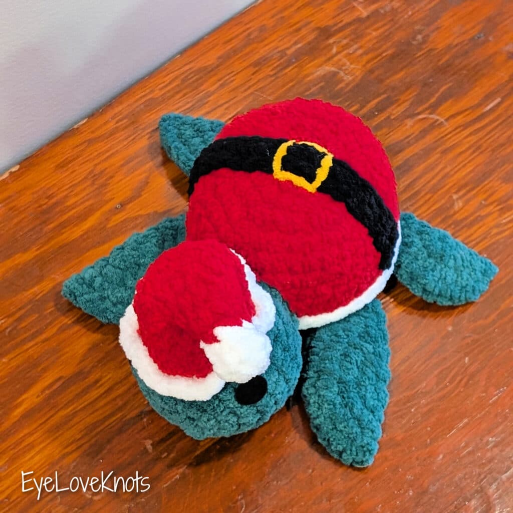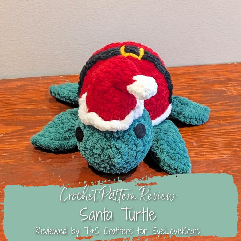 This is a crochet pattern review of the Santa Turtle designed by Happy Turtle Crochet. Review done by Candace of T&C Crafters for EyeLoveKnots.