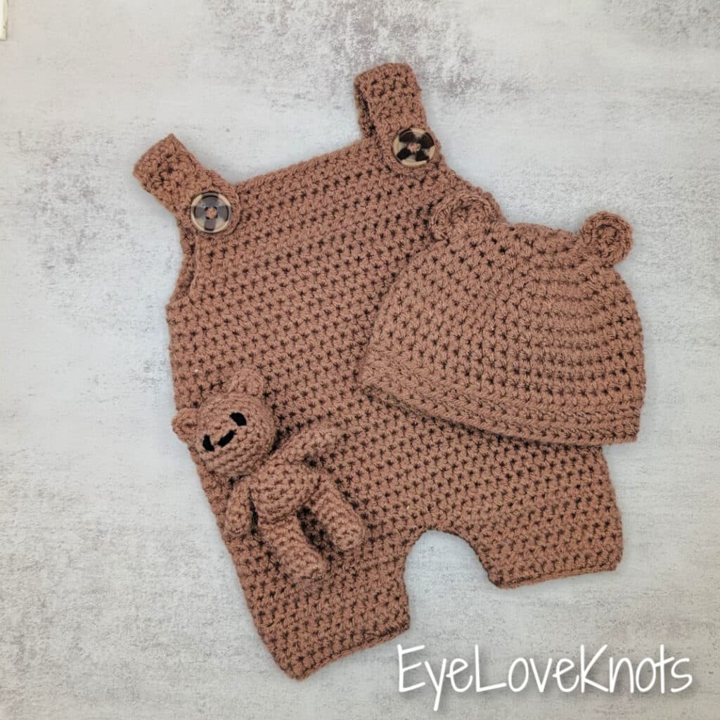 I have also tried out this pattern using different weights of yarn, including bulky and worsted weight. The pattern came out just as cute in the different yarn weights, so you can definitely make this pattern up with whatever weight yarn you like! When I made my smaller Finn Baby Bear, I used Ella Rae Cuddle Yarn. I also used Loops and Threads Soft Classic and Loops and Threads Petite Purl to make some really tiny Finn Baby Bears for newborn photo props.