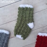 This is a free crochet pattern showing how to crochet the Little Pebbles Mini Stocking – a fun mini stocking pattern that combines single crochets and treble crochets to create a cozy texture.